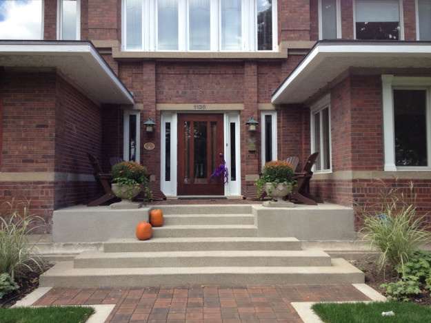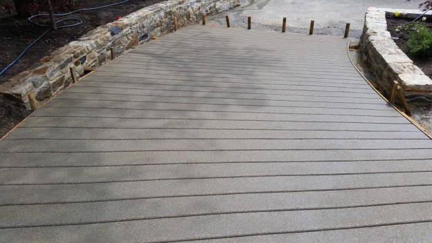 To fit the age and beauty of this lakeside property the designers chose our antique concrete finish. The antique concrete walk also has a custom score pattern to add to the design details. The weather texture of the surface mimics what nature does naturally after dozens of years.
